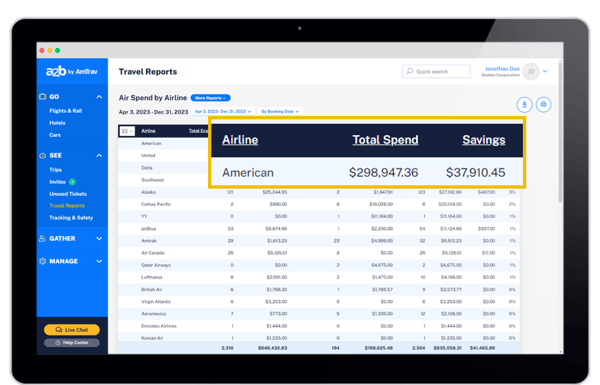 If you’re an AmTrav customer, this savings data is in your Travel Reports including at a booking-level in the Air Spend Report, ticket-level in the Air Ticket Report, and airline level in the Airline report, all of which can be filtered and sorted, downloaded for further manipulation and analysis.