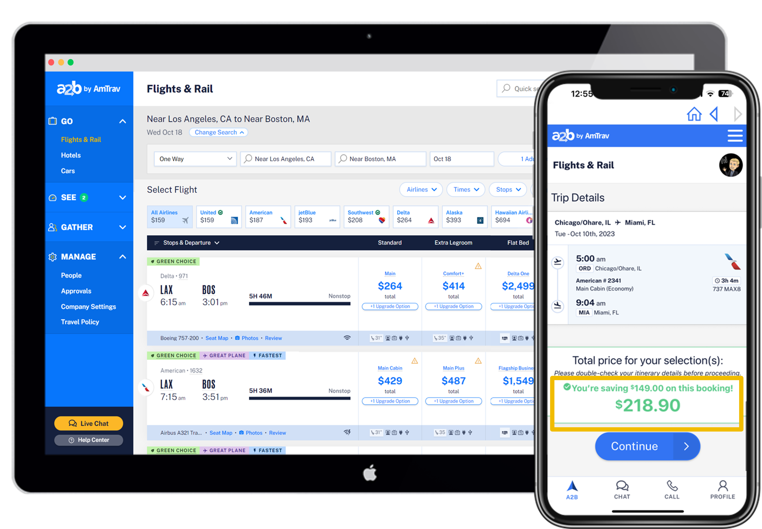 It has been a good year for managed travel customers who use AmTrav. Compared to their peers, they saved 9% with access to American Airlines’ lowest fares via our NDC connection, plus savings with Southwest’s and United’s lowest NDC fares too.