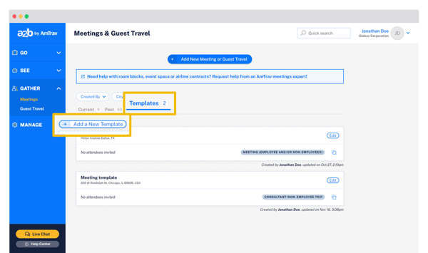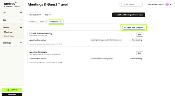 Template (option 2): You can also create a new template from scratch, clicking from your Gather page over to Templates then clicking Add a New Template: