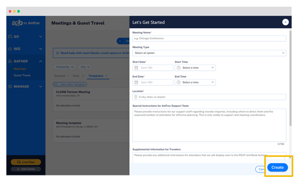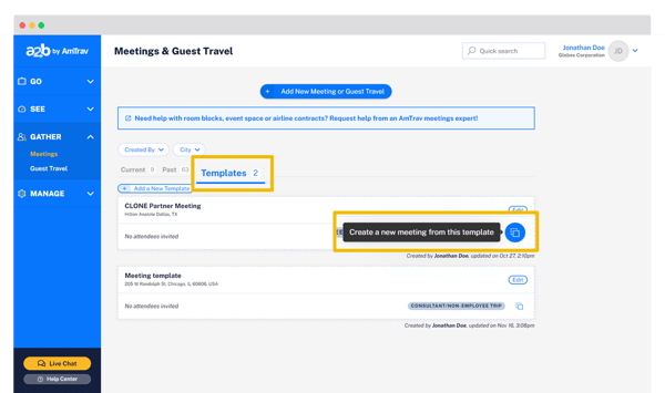Using a template: Ready to create a new meeting from a template? Navigate back to your Templates then click to Create a new meeting from this template for the appropriate template: