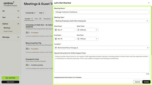 AmTrav Gather makes booking meeting travel within your policies and parameters easy, while giving your attendees the itinerary choice they want. A Gather meeting has four stages:
