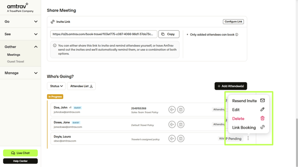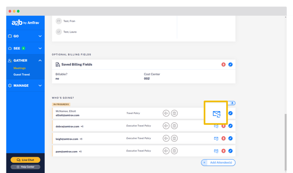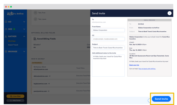 Gather makes it easy to re-send Gather invites to travelers who need a new copy or can't find their Gather invitation email.